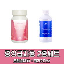 한달 동안 약 12kg 감량05:30 기상 - 클러스터워터 300ml 먹기 노니30ml 먹기06:00 운동전 에너진한개.. 유산소운동30분07:00 식사조금..(단백질 35g, 탄수화물 40g, 기타) 07:10 슬림30 한개..10:00 식사2 간단하게 고구마 한개오후1:00 클러스터워터 300ml오후1:30 순두부찌개 밥 계란말이등.. 800kcal섭취 그리고 식사중간에 데일리비타민한포섭취..에너진2개 오후4:00 간단한 조깅 (조깅중 CLA) ,줄넘기 수시로 녹차섭취..오후6:00 클러스터워터100ml 노니30ml먹음. 저녁6:30 우유에 단배질보충제먹음 이렇게 한달 생활하니 한 12키로 빠졌더군요. 효과는 괜찮은거 같아요.